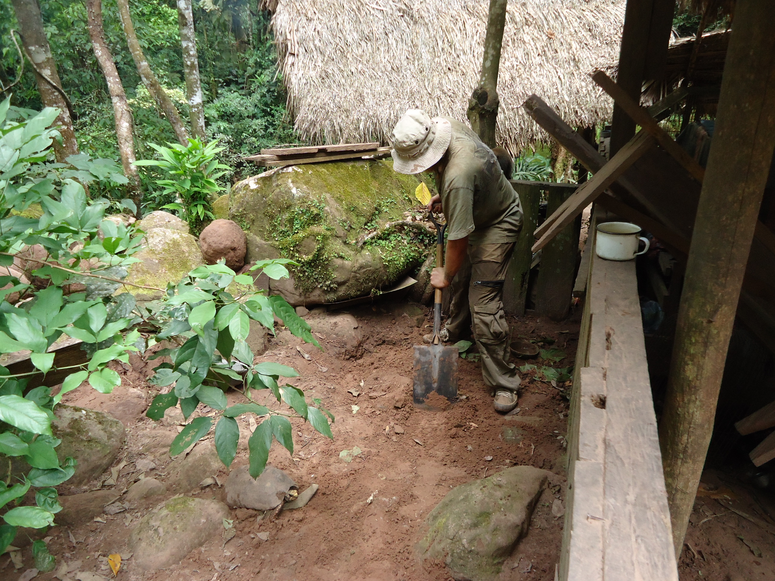Trabajamos con Orlando 2 semanas y para nosotros fue primera vez en la selva. Por este razón al princípio fue algo fuerte para nosotros. Vivímos a 5 minutos de la casa de Orlando, pero un día estaba lloviendo y el nivel del río subió. No pudimos cruzarlo para llagar a la casa de Orlando. Perdiamos un día trabajo y por ello me mude a la casa de Orlando. Marcin fue lo suficientemente valiente para quedarse en la primera casa. Yo tuve la ocación especial de dormir en la pequeña casa con el Nasua Nasua que era llamado Niki y ratones que eran más que bienvenidos en casa por la noche. Orlando preparaba comida para ellos, abría la puerta y ellos hacía fiesta alrededor de nuestra carpa!